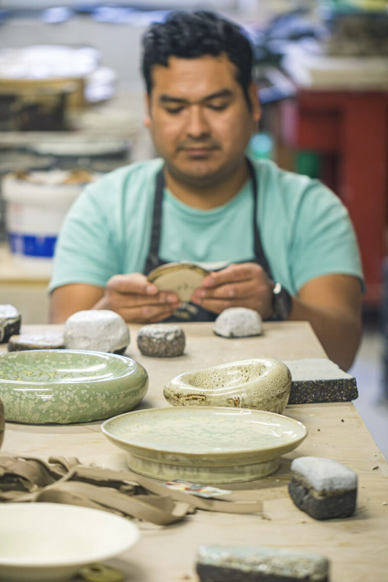 À l’atelier, chacun apporte sa vision : céramistes, cuisinier, designer, chimiste — tous, à leur manière, des artistes.