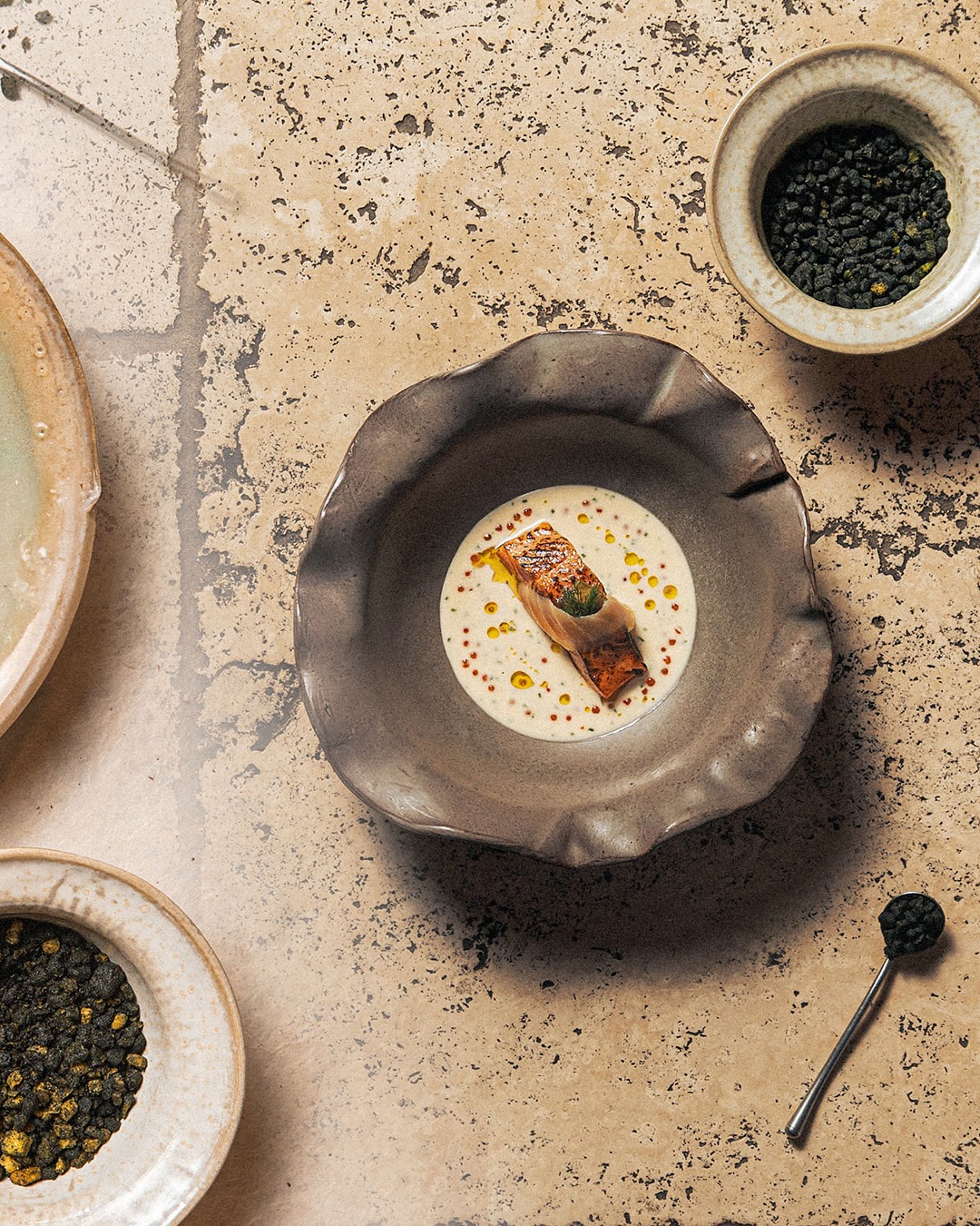 Né à l’initiative de Rudy Surco, cuisinier devenu céramiste, l’atelier réunit aujourd’hui une équipe engagée autour d’une même ambition : créer des pièces uniques pour mettre en valeur le geste du chef et les produits travaillés en cuisine.